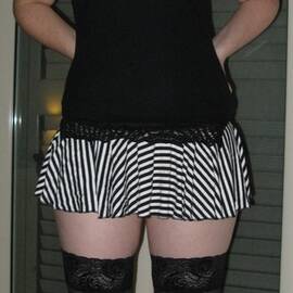 di spalle con gonnellina a righe e calze autoreggenti 2